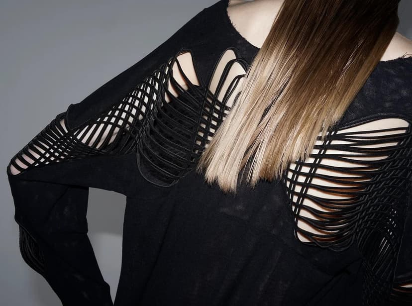Infusing his signature geometric precision and abstract fluidity into each garment, Chaim transformed these clothing pieces into his living canvases, where lines, intricate laser engraved layered patterns, and fluid forms move with the wearer. The collection feels like a second skin, one that carries the essence of Chaim's tattoos off the body and into a realm of wearable art, turning every piece into a striking visual statement that merges body, fashion, and design.